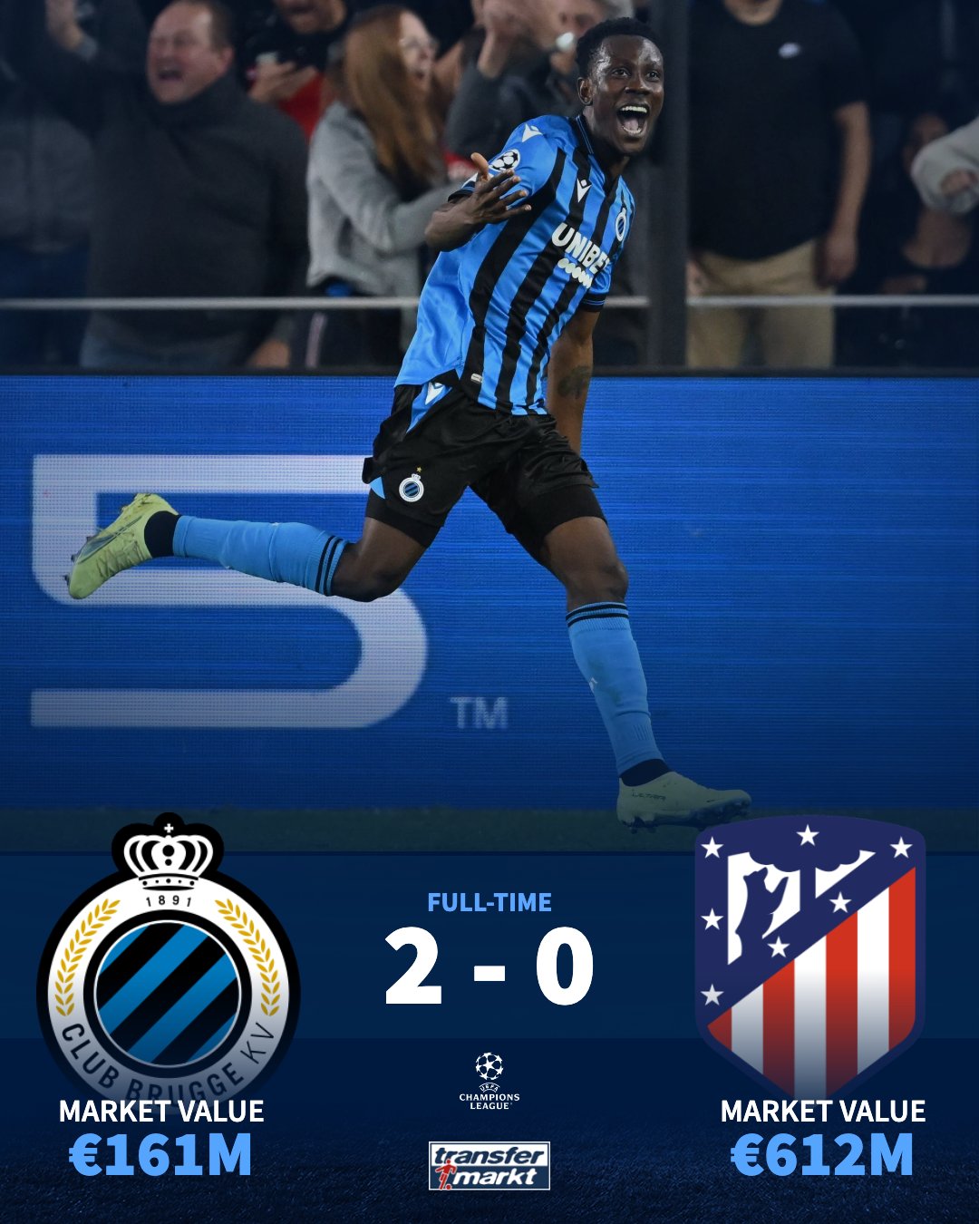 Na de overwinningen tegen Leverkusen en Porto zette Blauw-Zwart nu ook Atlético Madrid opzij. The Belgian side have won both of their. 2 days agoWere heading into Matchday 3 of the Champions League group stage and Club Brugge will be playing Atletico Madrid at 3 pm.